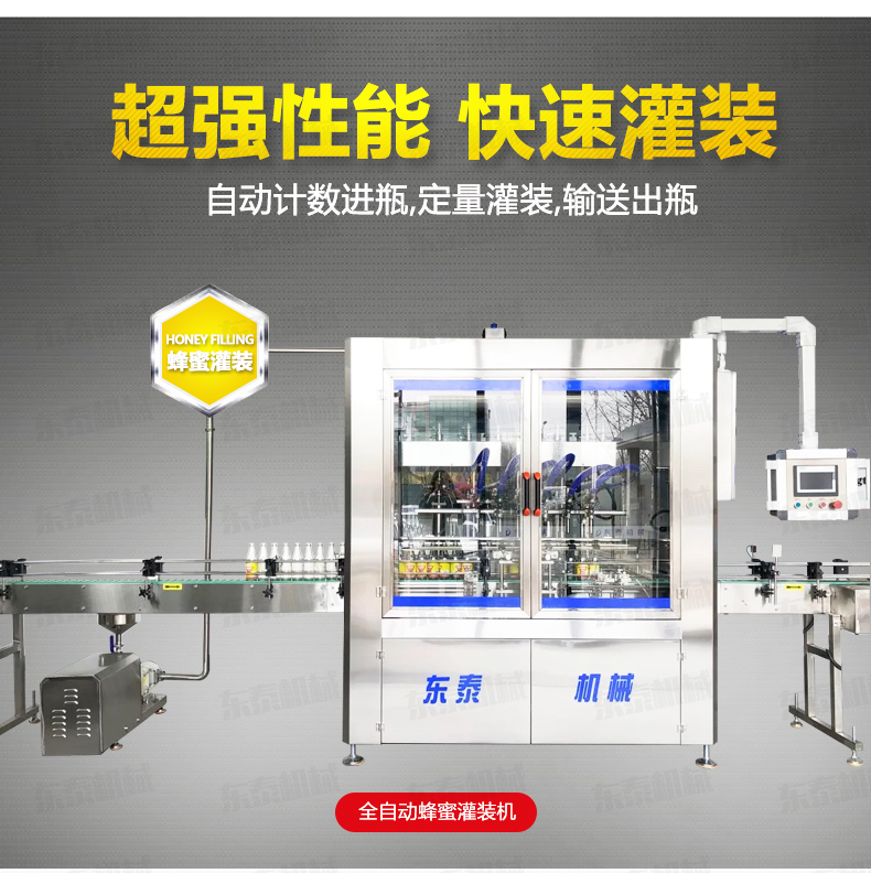 1、該機為全自動蜂蜜灌裝機,配有自動攪拌功能,使物料混合更加均勻 ,有效的解決灌裝誤差大的問題;