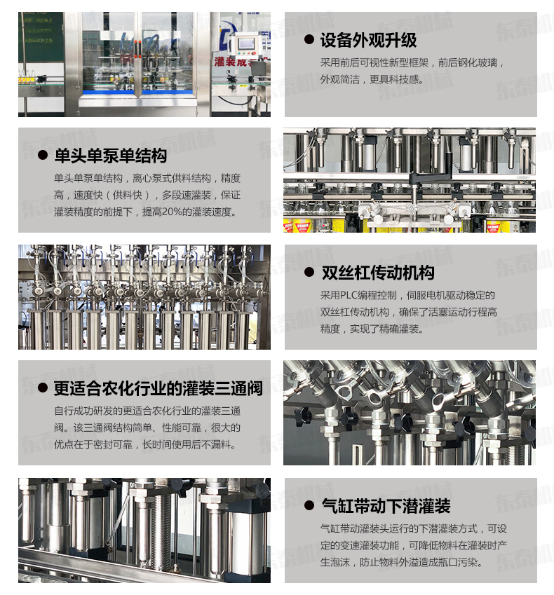 5、灌裝閥由氣動閥控制,灌裝精度更高。
