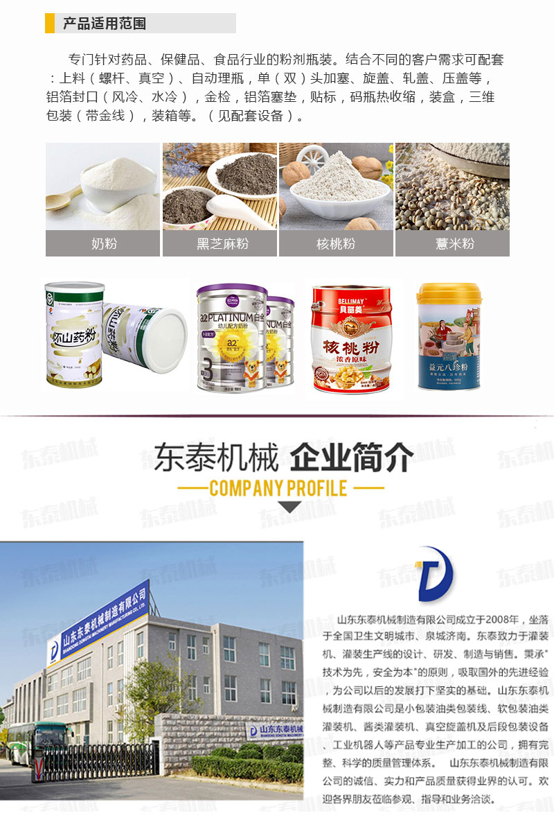 全自動(dòng)粉劑灌裝機(jī)適用范圍