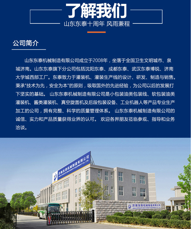 沈陽東泰機械隸屬于山東東泰機械,主營粉劑包裝機、醬類醬料包裝機、食用油灌裝機、食品包裝機、包裝流水線、灌裝生產線等產品,并且為東北地區客戶提供售后維修服務...
