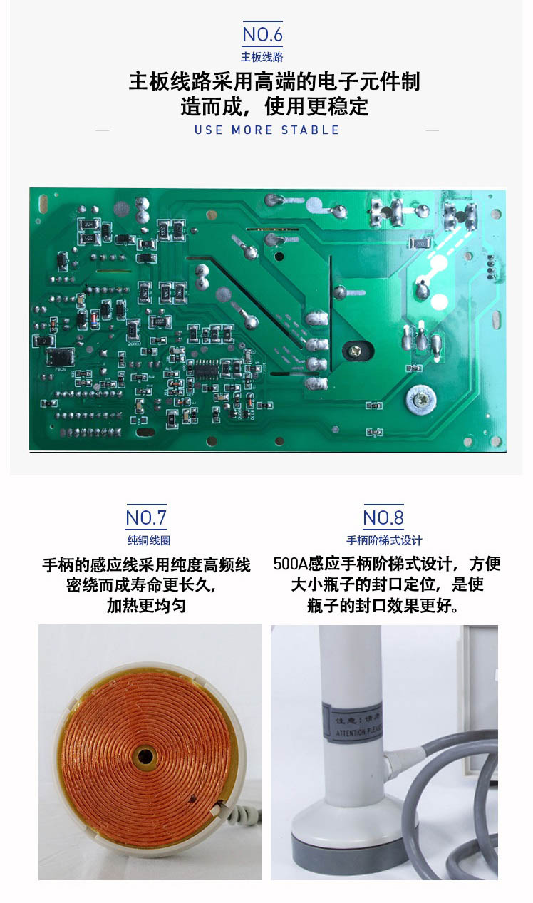 該該封口機(jī)是一種便攜式電磁感應(yīng)加熱封口設(shè)備,專(zhuān)為制藥、化工、農(nóng)藥、食品、化妝品、輕工行業(yè)對(duì)容器進(jìn)行鋁箔嚴(yán)密封口。